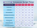 How Long is My Voiceover Script? Clients often ask, “how long will my voiceover script be?” Check out the Script Timer Voiceover Calculator! My experience in post-production and as a voice talent taught me that for long-form narrations (corporate video, documentaries, eLearning) one should figure around 140 words per minute of script. Yes, voice over […]